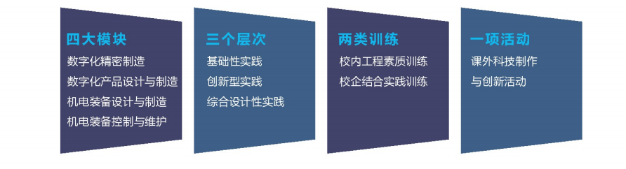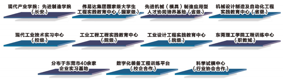 (2)注重学生实践能力、创新能力的培养。学院充分利用东莞作为国际制造业名城的产业优势和资源优势,在东莞市50余家制造企业建立了实习基地和校企联合实验室,设立多个以本科生为主的创新人才培养基地和职业技能认证基地,形成了“四大模块、三个层次、两类训练和一项活动”的实践教学新体系。
