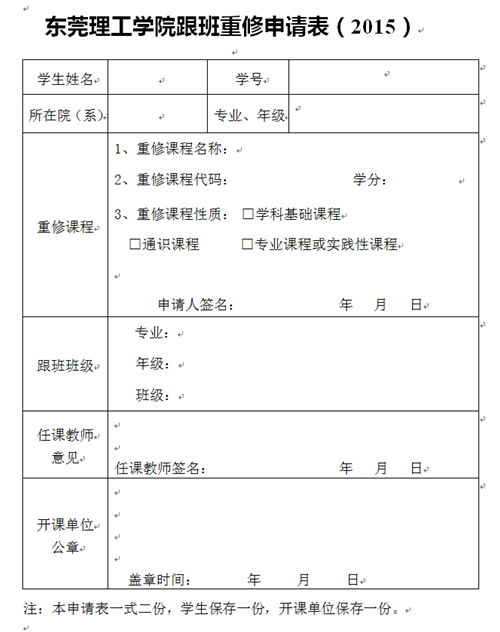 到教务处主页“下载专区”或者本学院“下载中心”,下载《跟班重修申请表》2份,按要求填写、任课老师签名后,提交至开课单位教学秘书。