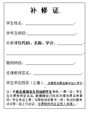 转专业后对于没有上过的前期课程(核对现专业人才培养计划),境外交流回来后不能对应转换学分的课程,要进行补修。到教务处主页“下载专区”或者本学院“下载中心”,下载补修证,一式两份,按要求填写盖章,提交一份给本院系教学秘书,自己留一份(期末随试卷上交任课老师)。跟班班级请按问答3跟哪个班去重修?的提示查询。如本学期没有开课,则顺延至下学期再申请。