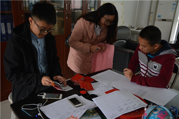 下午,各班班长收集班内学生的学生证,统一上交到12A301辅导员办公室进行注册。工作人员负责盖章注册,班长们各自上报己班人员到校情况。据悉,只有部分学生因为不同原因而不能及时到校,其他学生已基本到齐。