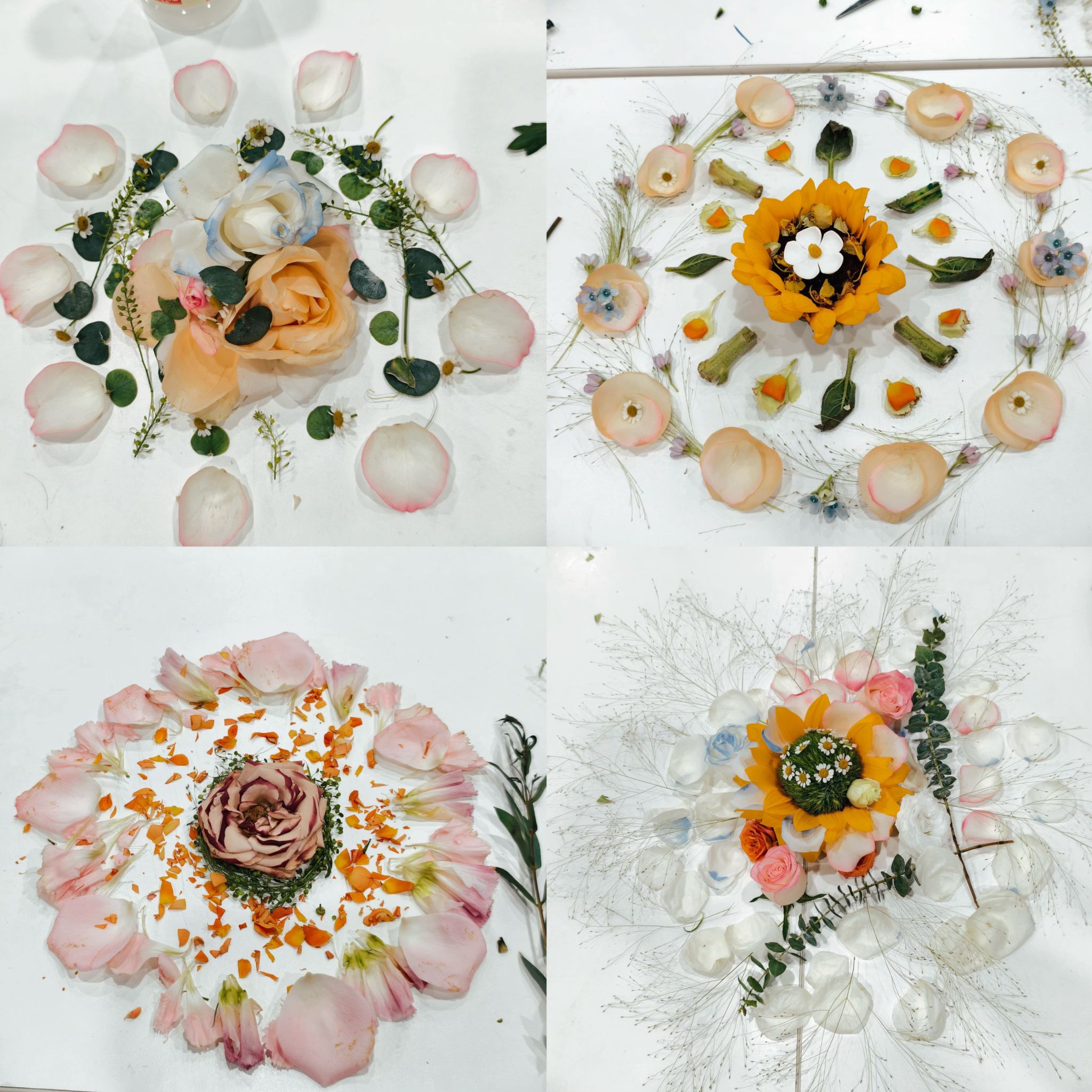 创作完成后,同学们纷纷表示,每一片花瓣的摆放都是内心的表达,团队合作让大家学会倾听彼此,而对称构图的过程本身就像一场自我疗愈。曼陀罗创作能有效缓解日常的学业焦虑,通过非言语的艺术形式,为情绪找到出口。