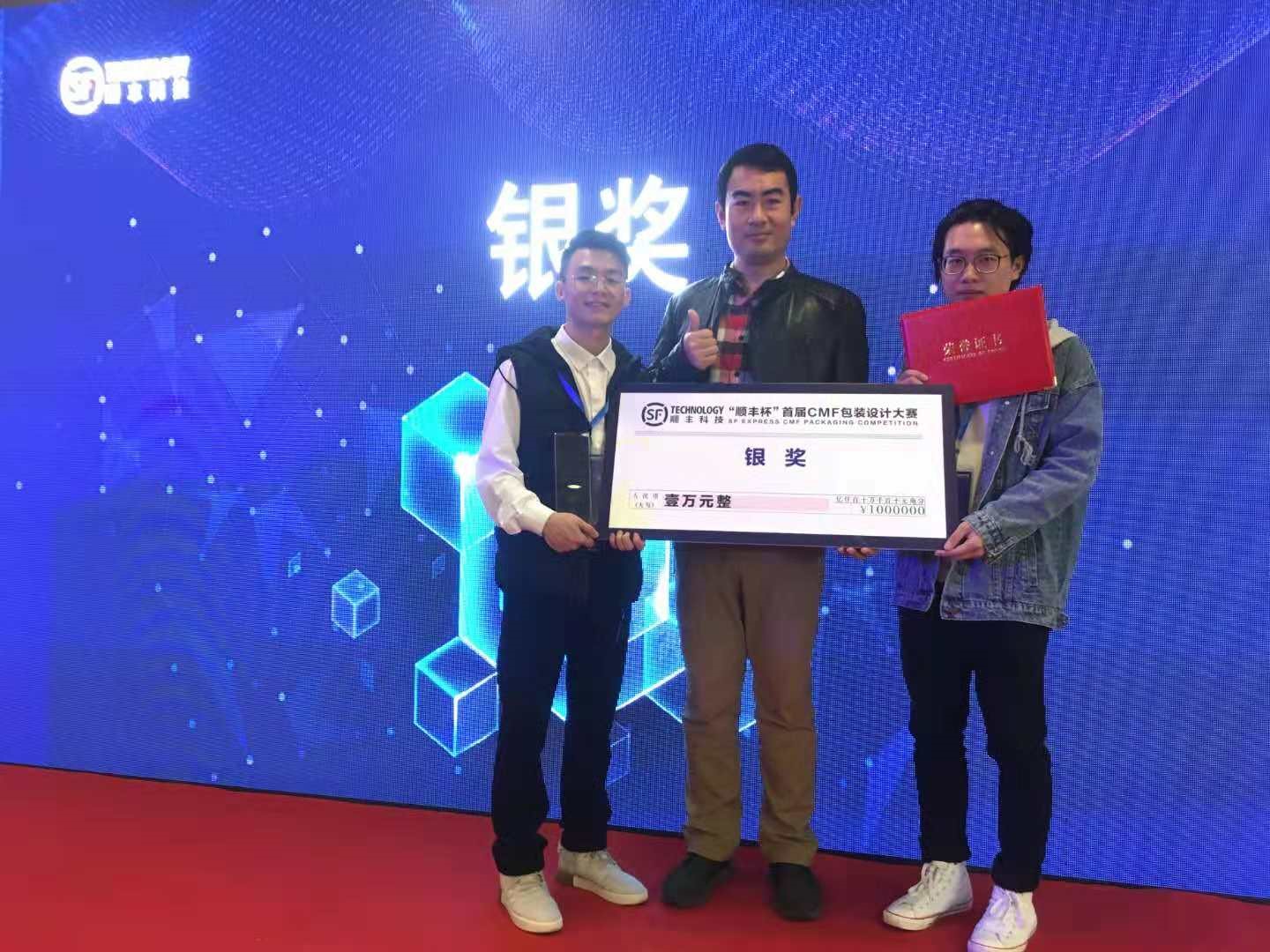 同天上午举行了首届“顺丰杯”CMF包装设计大赛决赛。经过激烈角逐,最终共有8支队伍进入决赛环节。我校必赢nn699net2015级工业设计专业学生孙泽鑫、欧阳明华组成的“欧泽团队”作为决赛中唯一一支学生团队,与业内设计师展开同台竞技,他们针对解决家电类商品快递运输包装问题的设计作品——“大家电快递保护方案”获得在场5位评委的良好评价,获得银奖。以上两支参赛队伍的指导老师孙小傅也被评为大赛最佳指导老师。