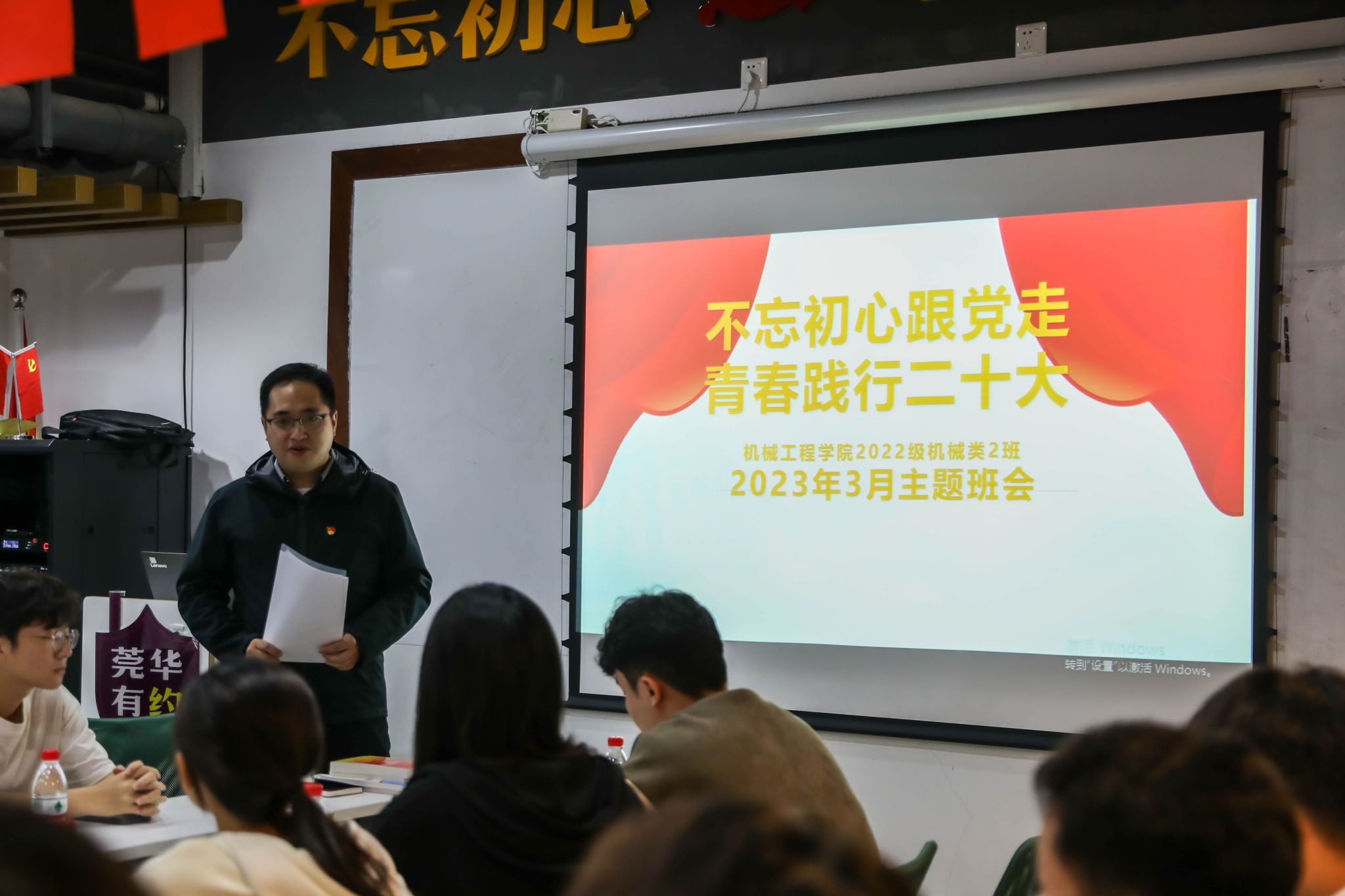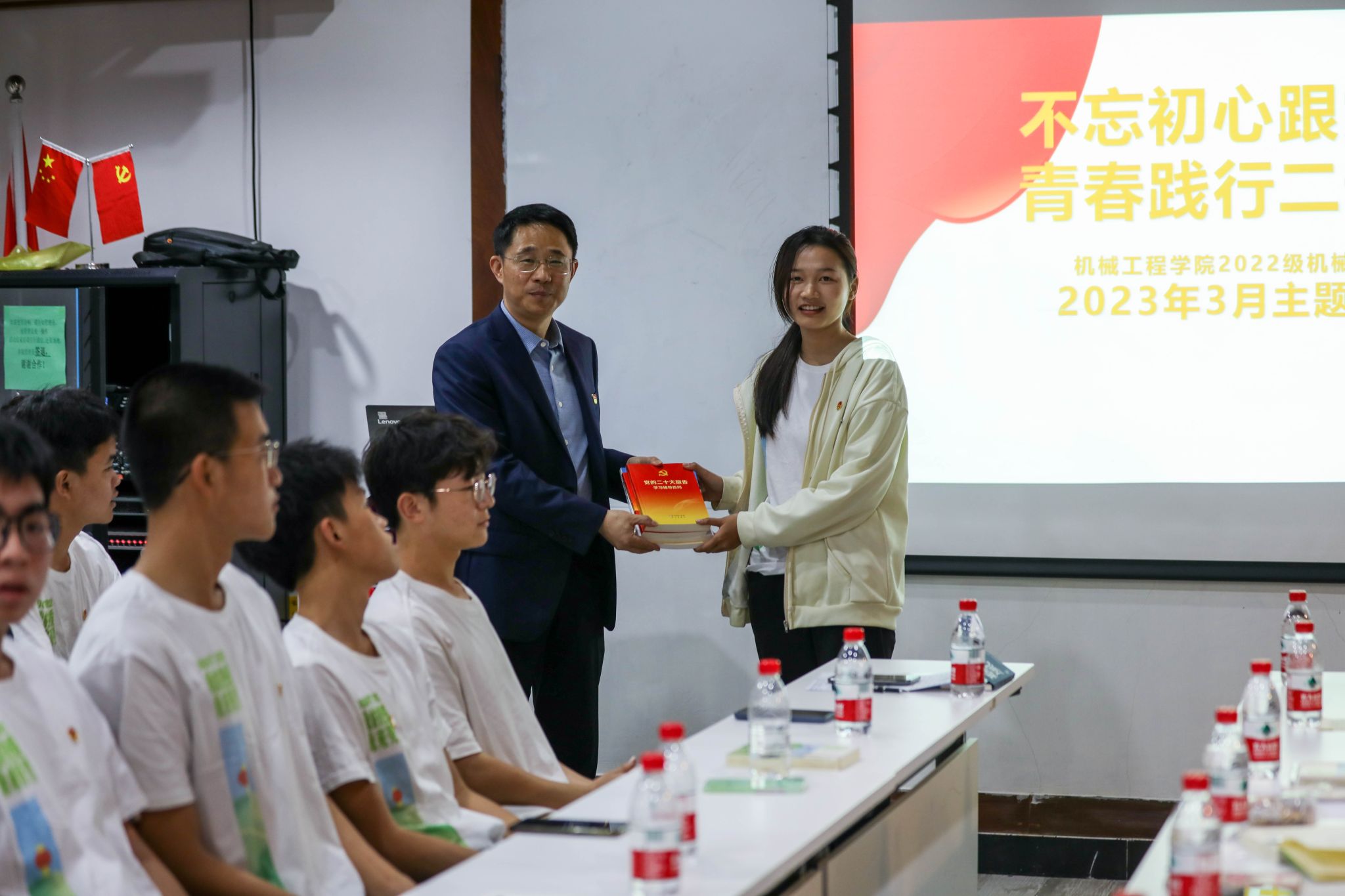 3月2日晚,校党委书记成洪波参与联系班级——必赢2022级机械类2班组织的“不忘初心跟党走,青春践行二十大”主题班会。党委学研工部、必赢nn699net、马克思主义学院相关老师及2022级机械类2班全体在校同学参加了班会,班会由2022级机械类2班班主任邓维伟主持。