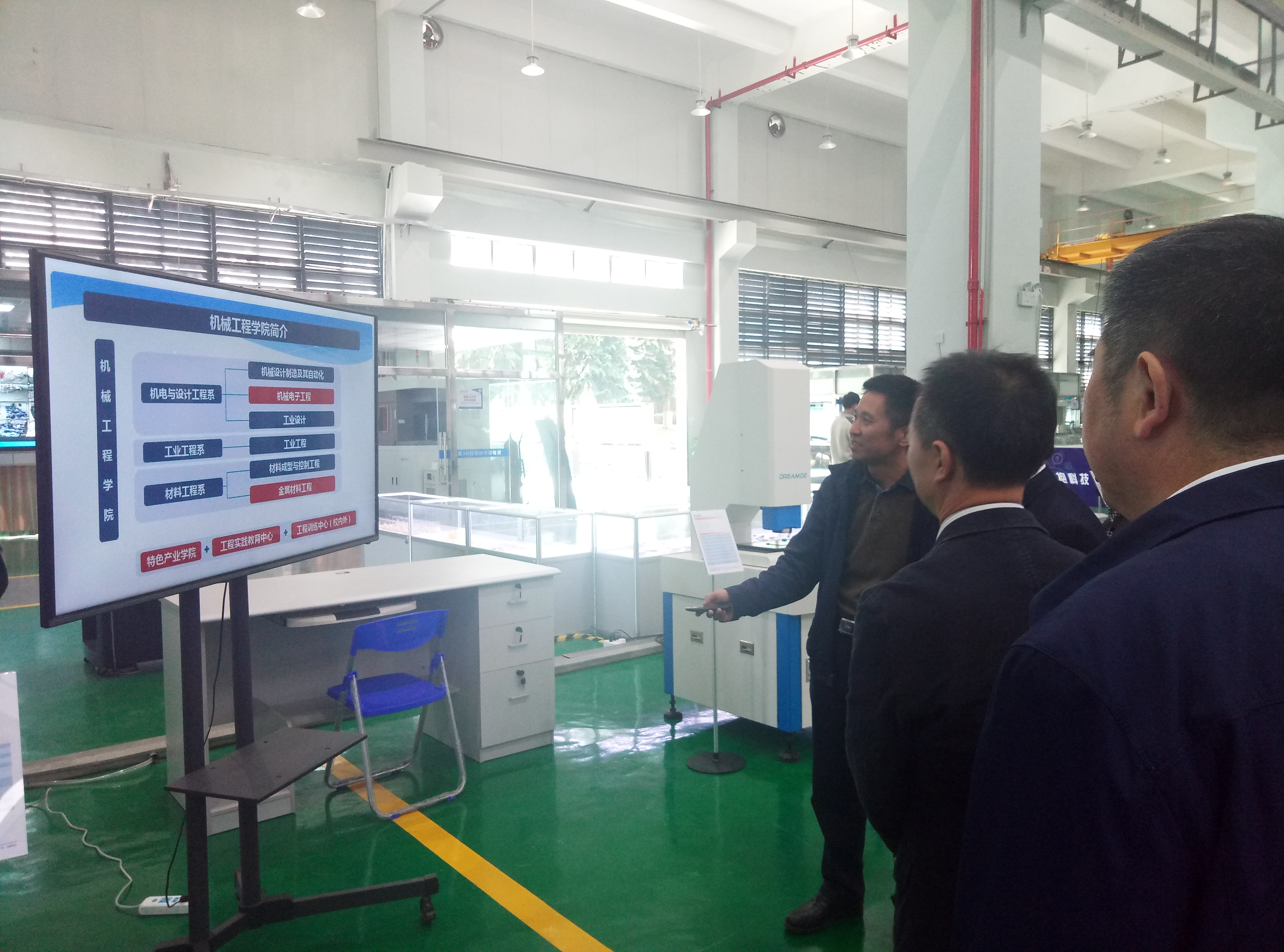 2018年4月8日上午,我校李忠红校长陪同广东石油化工学院张清华校长一行到访必赢nn699net数字装备工程训练中心,必赢孙振忠院长参加了本次接待活动。