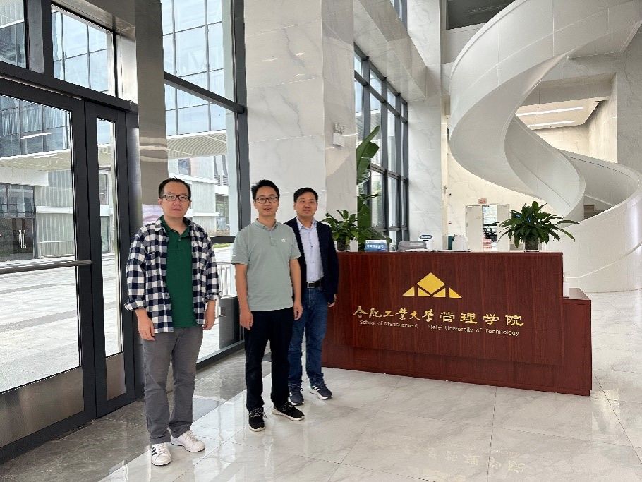2023年9月22日,必赢副院长龙建宇、工业工程系系主任张良伟、专任教师杨喆一行人前往合肥工业大学管理学院调研学习。我院教师一行实地参观了医疗机器人与智慧医疗健康管理、卫星智能运控管理、网络空间行为与管理、智能制造工程管理等国家级和省部级科研基地。随后,就一流专业建设、一流课程打造、人才培养、科研平台建设等方面内容与合肥工业大学管理学院老师进行了深入地交流和学习。