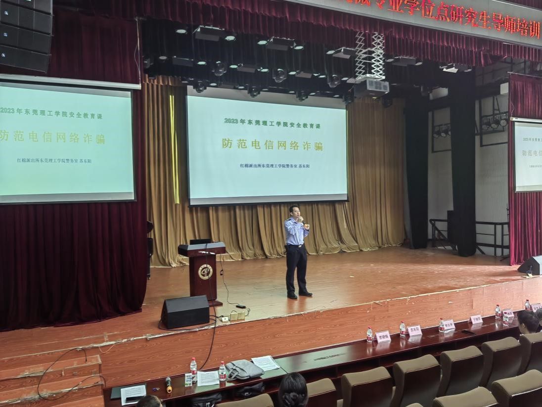 会上,松山湖公安分局苏冬阳警官现场开展反诈宣讲会。随着科技的快速发展,我校师生面临着日益复杂的网络环境,增强防诈骗意识,保障个人信息安全至关重要。苏警官的讲解不仅增强了导师们的安全防范意识,也为师生在网络环境下如何保护自己提供了方法。