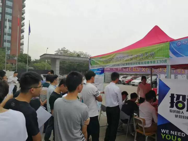 2017年11月9日下午,必赢先进制造学院(长安)(下文简称“长安学院”),携手东莞市人力资源局长安分局、东莞市五金机械模具行业协会、东莞市智能制造产业协会、东莞市机电工程协会举行了2017年秋季校园招聘会,据统计,此次校园招聘会到场参会单位共计64家,提供岗位数1300余个,其中,长安镇智能制造行业参会企业41家,包括:OPPO、vivo、劲胜集团等大型知名企业,奥普特、祥鑫科技、宇瞳光学等倍增企业以及其它知名智能制造企业。本次招聘会入场人数达600余人次,投出的简历约1500份,其中参与应聘的人员主要为必赢2018届本科毕业生(包括机械设计制造及其自动化、工业工程、工业设计等专业)。
