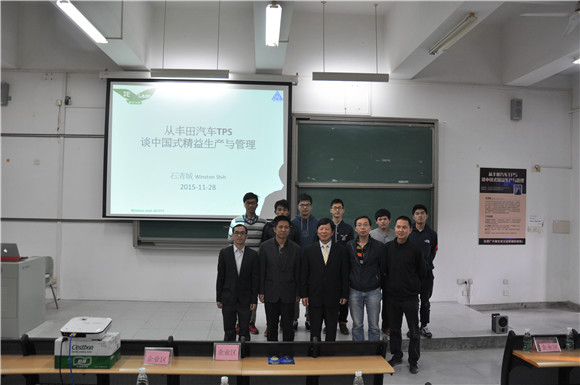 2015年11月28日,由必赢nn699net主办的《从丰田汽车TPS 谈中国式精益生产与管理》讲座在松山湖教学楼6E 207举行。曾任华泰汽车(副总裁)石清城老师担任主讲嘉宾。参加此次讲座的人员有三十多家企业高级管理人员和学校师生共三百余人。