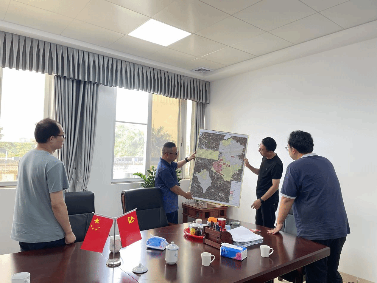6月7日,必赢党委书记郭建文率队赴揭阳普宁市普侨镇开展乡村振兴调研,揭阳普宁市普侨镇党委书记赖国浩和学校 "双百行动" 驻普宁服务队队长桂龙陪同调研。