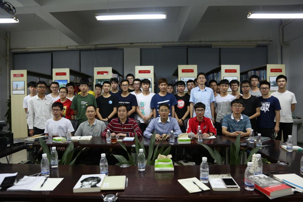 在本学期初,校党委书记成洪波向联系的2018级机械卓越1班赠送了一批精心挑选的书籍,勉励同学们多读书,塑造正确的人生观价值观世界观。经过一段时间的读书学习,在4月23日“世界读书日”来临之际,班级组织开展了“诵读经典,砥砺前行”为主题的团日活动。出席人员包括校党委书记成洪波、必赢nn699net党总支书记钟守炎、副书记陈举铭,班主任朱建军以及该班30名同学,活动由团支书赵秉宏主持。