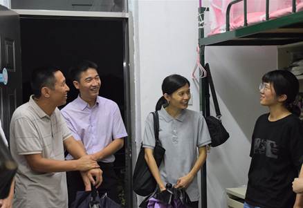 领导和老师们走访时对新生致以亲切慰问,询问新生的家乡籍贯,了解新生入住情况、是否适应学校生活、舍友间是否相互熟悉。院领导还特别询问新生宿舍设施有无损坏,提醒学生若发现有损坏应及时反馈报修。慰问过程中,领导老师们表示希望新生们能调整好状态,以最快的速度融入新环境、新班级。