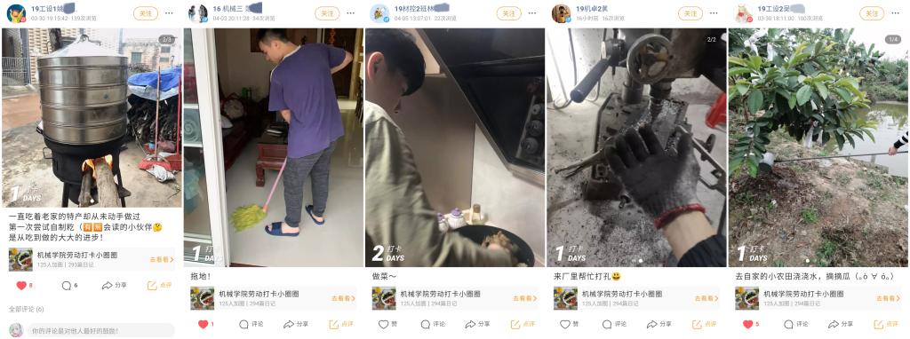 通过学院官方微信公众号“机械青匠”宣传动员,鼓励居家学生主动承担如扫地、拖地、洗碗、做饭等家务,掌握1-2门生活技能(家住农村的学生可帮忙参与农活);充分发挥动手实践能力,制作手工艺品、拼图、模型等;党建带团建,实现党员示范引领,团员积极响应,在做好个人防护的前提下,鼓励学生党员、团员青年积极参加公益劳动、志愿服务活动。