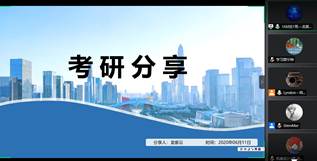 为做好考研学子信息服务工作,进一步提升我院学生考研成功率,6月11日晚,学院在线上召开2020年考研经验分享会,邀请了今年考研成功毕业生代表进行经验分享交流,会议由辅导员肖毅老师主持。