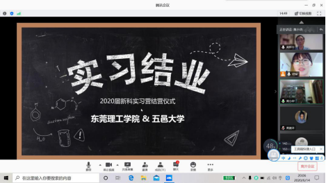 6月15日晚上8:00-9:30,2020届新科实习营实习结业仪式别开生面地采用了线上会议的形式召开,主持此次会议的是新科人事部高级经理黄小华先生,与会人员除19位参加岗位实习的同学外,还有校方教师代表:黄辉宇副院长、吴鹏老师、朱建军老师、胡亚老师。