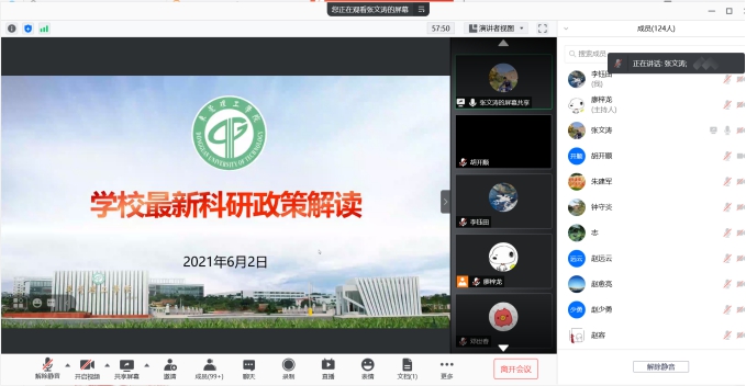 随后,张文涛汇报本学期学院横向科研情况,并解读《必赢校外获得竞争性科研项目经费使用管理实施细则(试行)》相关政策。