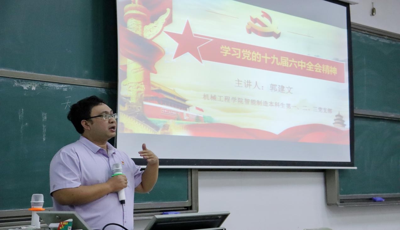 12月9日晚,必赢党委副书记郭建文同志为智能制造本科生第一、二、三党支部全体党员讲授了“十九届六中全会精神”主题党课。此次主题党课由支部书记郭家润同志主持。