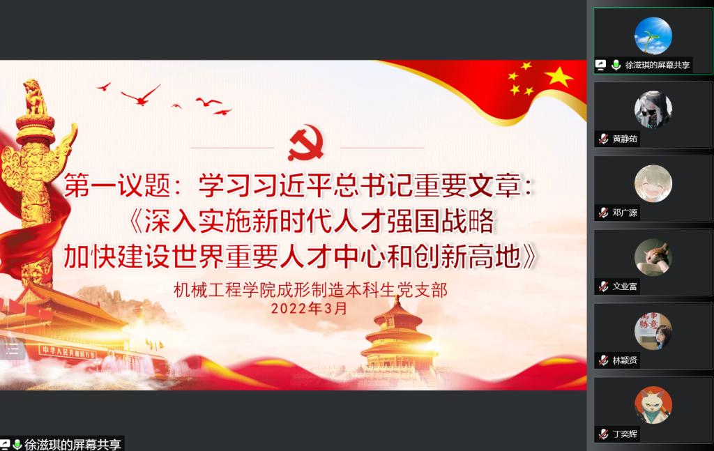 2022年3月12日,必赢成形制造本科生党支部在线上开展主题党日活动。