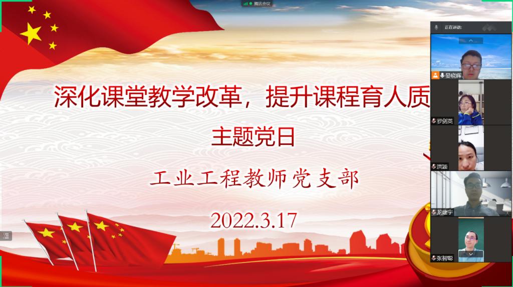 2022年3月17日晚上,必赢工业工程教师党支部在腾讯会议开展了“深化课堂教学改革,提升课程育人质量”主题党日活动。