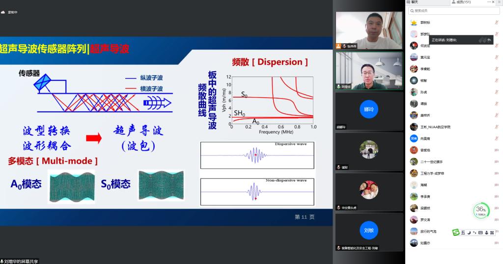 刘增华教授深入浅出的讲解使参会老师及学生都受益匪浅,在提问环节中,参会人员积极踊跃提问,刘教授对其逐一进行详细地解答。刘教授生动精彩的讲座不仅让无损检测的研究者们了解到超声导波阵列成像检测技术,拓宽了视野,为研究者们提供新的思路。
