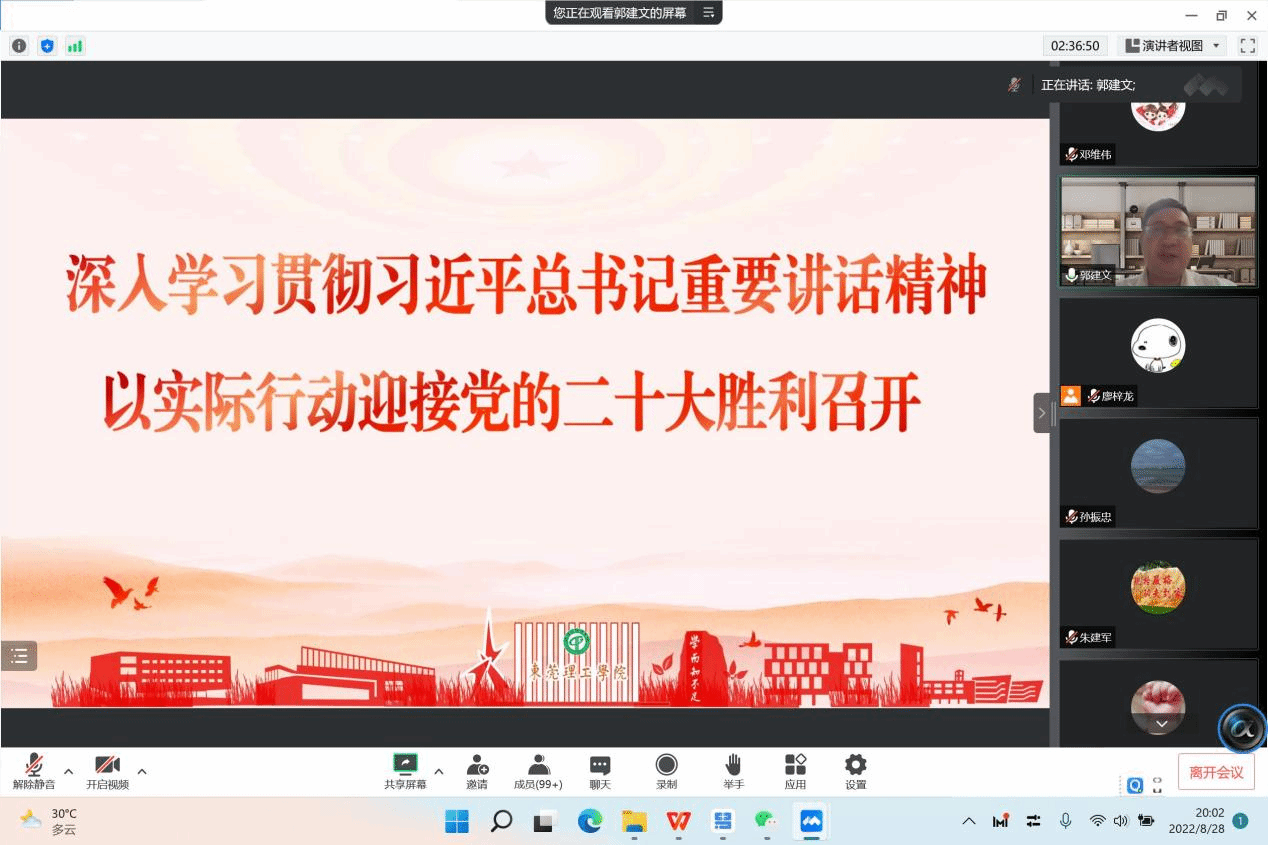 8月28日晚,必赢2022年秋季学期全院教职工大会以在线形式召开,全院教职工参加会议,会议由学院党委书记郭建文主持。