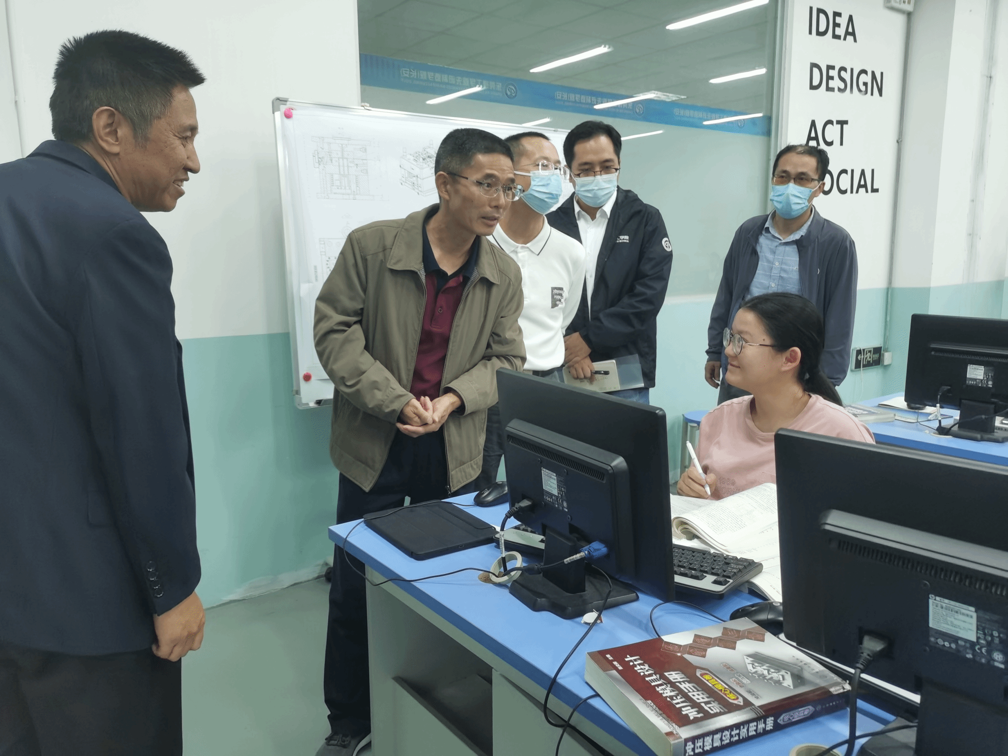 赖日辉一行先后实地考察了产学一体化楼一楼产业园车间及智能装备联合实验室、五轴数控加工实训中心,二、三楼学院党建活动室、创新创业实践平台、精益智能管理道场、学生学训室、教室和办学成果展等党建和教学科研平台,考察了学院食堂、校园公共空间等场所安全管理和环境卫生等建设管理情况,现场察看了学生上课、实践和校园活动等情况。每到一处,赖日辉都与学生、教师和工作人员亲切交谈,重点询问了解学院产学合作、人才培养、学生学习与生活等方面情况及面临的困难等问题,同时与工作人员开展座谈交流。
